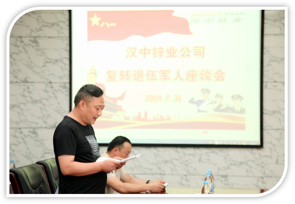 王正民通報了公司上半年生產(chǎn)經(jīng)營情況,指出,公司生產(chǎn)經(jīng)營穩(wěn)中向好,職工隊伍穩(wěn)定;按照三年脫困計劃,各項工作齊頭并進,公司形勢逐步好轉(zhuǎn)。他希望復(fù)轉(zhuǎn)退伍軍人深刻領(lǐng)會習(xí)總書記的講話精神,認(rèn)真學(xué)習(xí)時代楷模張富清的優(yōu)秀品質(zhì)和奉獻精神,繼續(xù)保持軍人的優(yōu)秀品質(zhì),發(fā)揚軍人的優(yōu)良傳統(tǒng)和作風(fēng),爭做新時代產(chǎn)業(yè)工人的表率,影響和帶動更多的工友,立足本職,愛崗敬業(yè),團結(jié)一心,克難攻堅,為公司“三年脫困”目標(biāo)的實現(xiàn)大干快上,扎實工作;勤于學(xué)習(xí),勇于進取,以“時不我待、只爭朝夕”的奮斗姿態(tài),跟上發(fā)展的步伐,勇于學(xué)習(xí)新知識,掌握新技能,創(chuàng)造新業(yè)績;一如既往地關(guān)心漢鋅的發(fā)展,以“愛廠如家、愛崗敬業(yè)”的主人翁責(zé)任感,積極為漢鋅的發(fā)展建言獻策,共同為推進漢鋅早日走出困境、再創(chuàng)輝煌,并肩奮戰(zhàn),再做新貢獻!